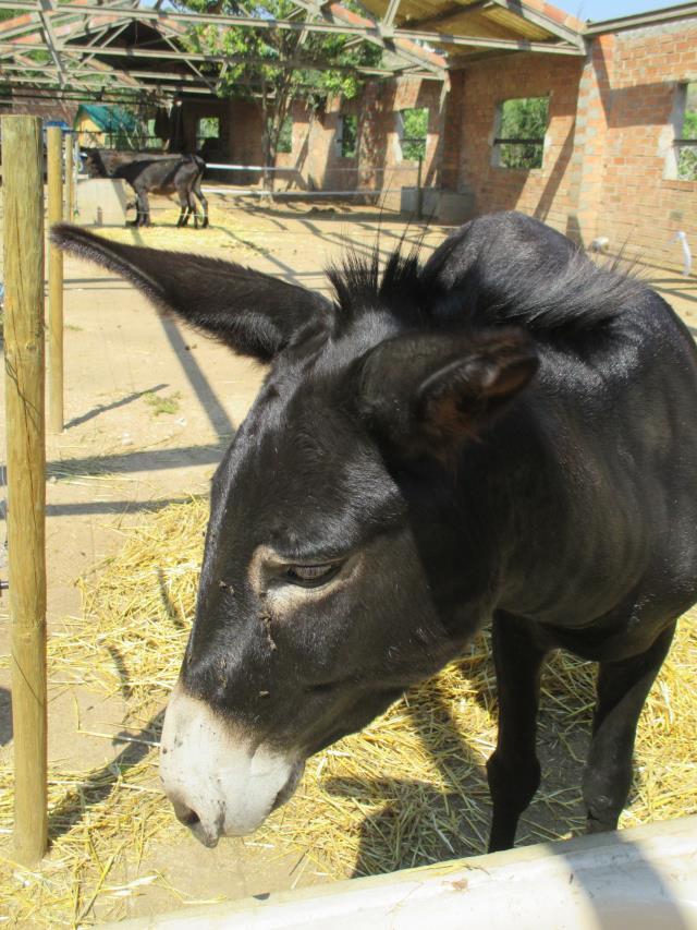 ButtonMacaret is the most veteran donkey, a 18-year-old male, he is very patient and a little scared.